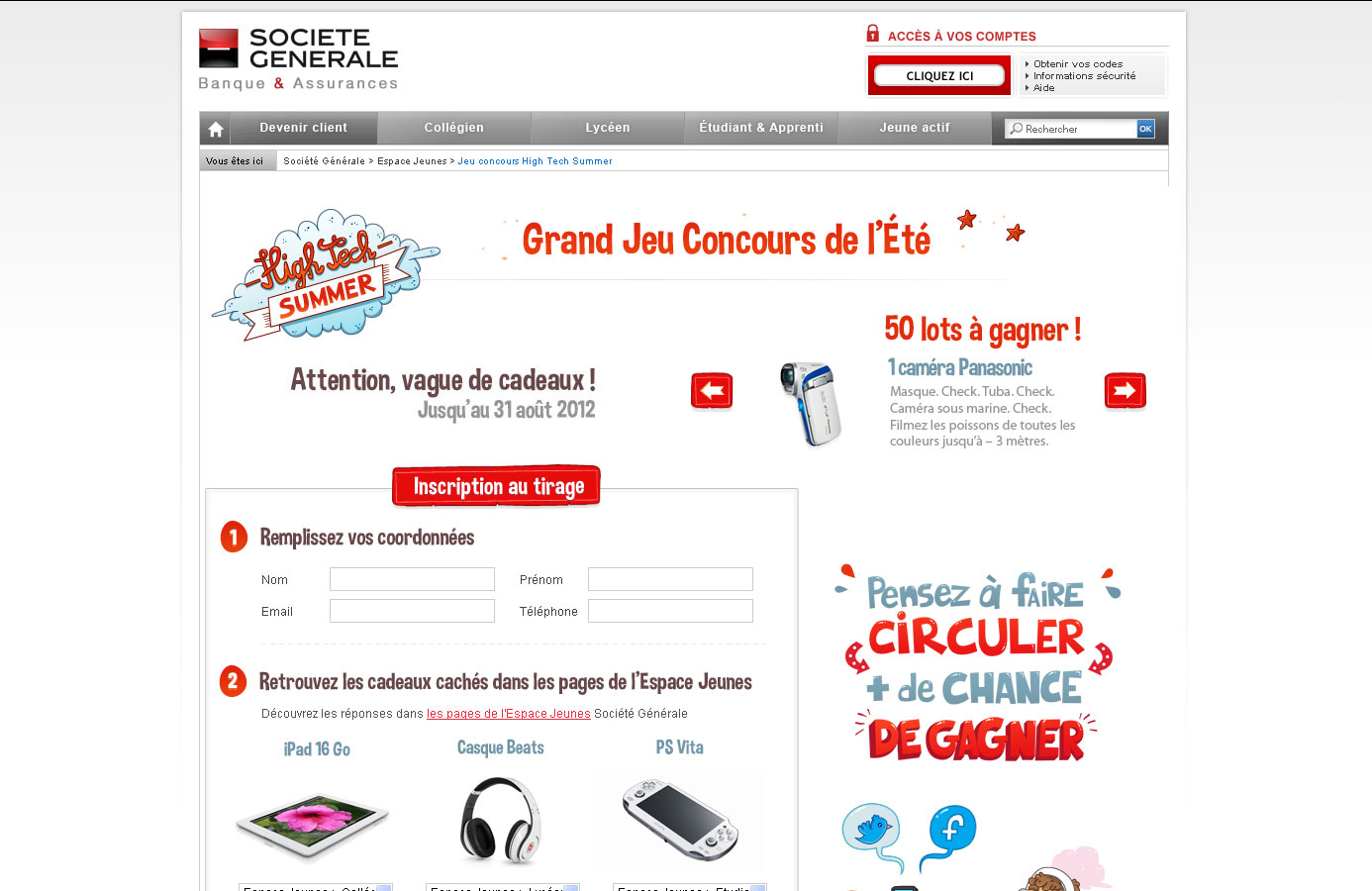 Création d’un fort trafic sur le site de la Société Générale à l’aide d’un jeu concours dont les lots sont cachés dans les pages du site.